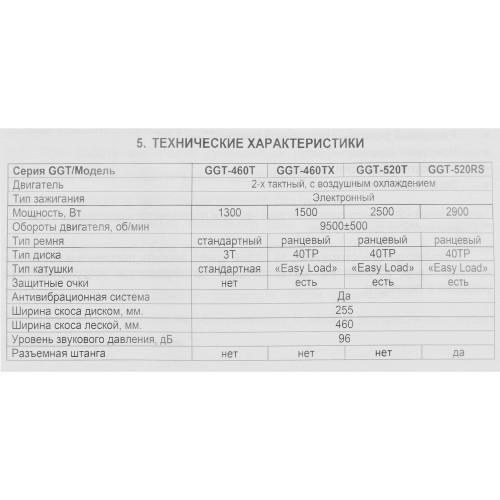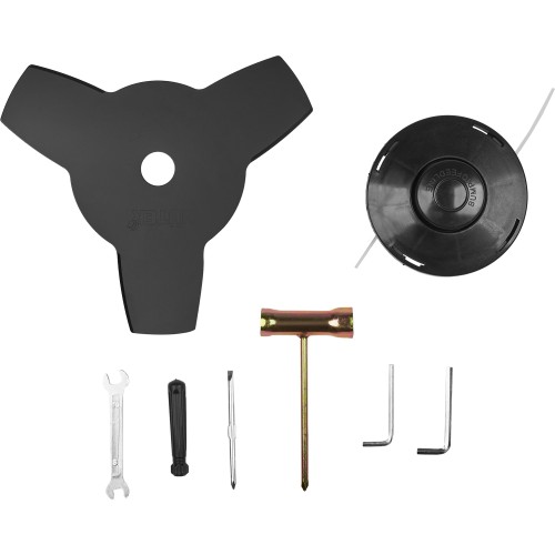Имеет двухтактный бензиновый двигатель мощностью 1,7 л. С., объем топливного бака — 1,7 л. Оснащен катушкой с леской диаметром 2 мм. Вес модели составляет 8,7 кг. Страна производства — Китай. Гарантия — 1 год.