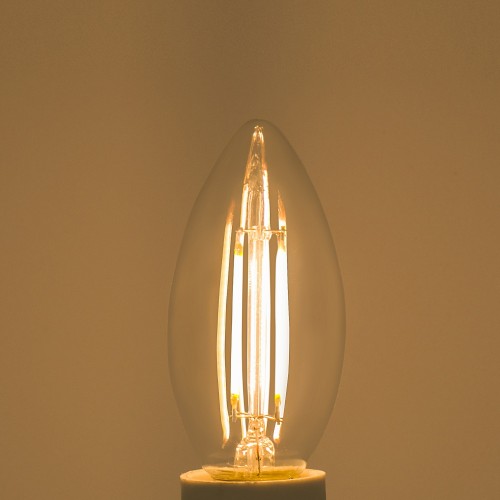 Лампа светодиодная Lexman обеспечивает яркое освещение при потребляемой мощности всего в 4,5 Вт. Световой поток составляет 470 лм, что соответствует яркости лампы накаливания мощностью в 40 Вт. Колба лампы прозрачная, в форме свечи.