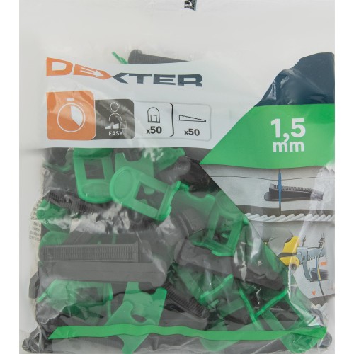 Комплект зажимы и клинья для выравнивания плитки Dexter 1.5 мм 50/50 шт.