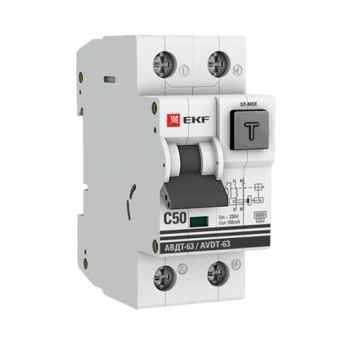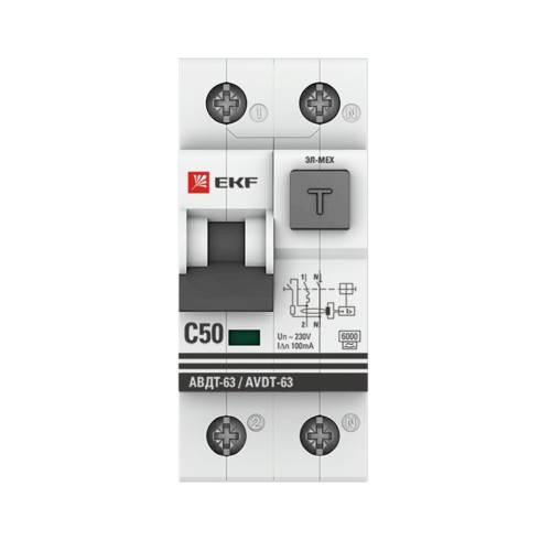 Дифференциальный автомат EKF PROxima АВДТ-63 2P C50 А 100 мА 6 кА А DA63-50-100e