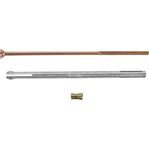 Рамный анкер-дюбель 8х152 состоит из трех элементов — винта с потайной головкой с резьбой М6 длиной 152 миллиметров, втулки конусной формы с внутренней резьбой М6 и двухраспорного цилиндра (штифта) внешним диаметром 8 миллиметров. При ввинчивании винта (шурупа), конический элемент движется навстречу резьбы, расширяя штифт, который за счет силы трения фиксируется в основании.