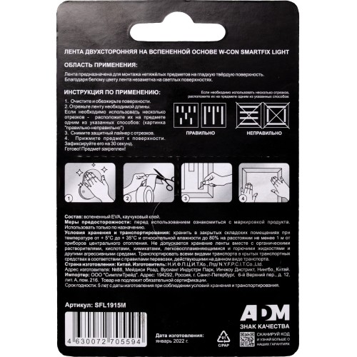 Лента вспененная двухсторонняя для внутренних работ W-Con 19 мм x 1.5 м цвет белый применяется для проведения мелких ремонтных работ в быту, крепления постеров, фурнитуры и т. д. Обладает высокой устойчивостью к воздействию влаги, перепадам температур.