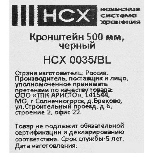 Кронштейн НСХ 500 мм Фиксируется в пазы перфорации направляющей навесной. Используется для установки сетчатых полок. Для придания завершенного вида конструкции используются декоративные накладки на кронштейн.
