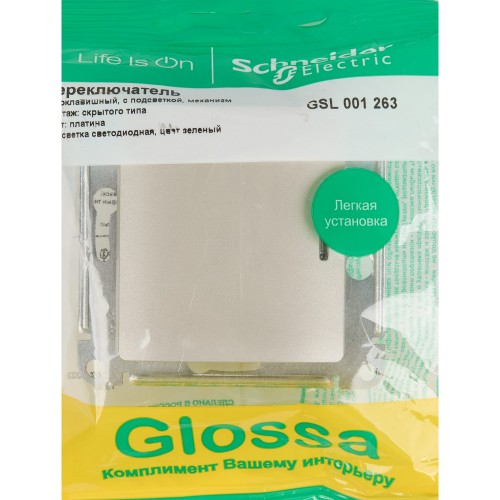 Переключатель встраиваемый Schneider Electric Glossa СХ6А 1 клавиша цвет платиновый