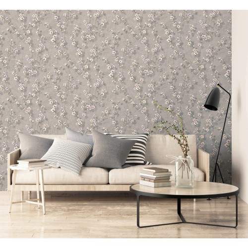 Обои флизелиновые Артекс Азалия темно-серые 1.06 м 10677-04
