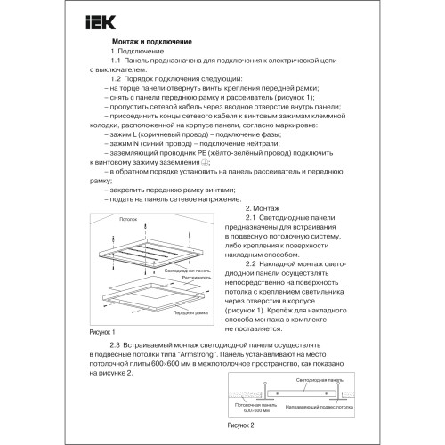 Панель светодиодная IEK ДВО 6578P используется для внутреннего офисного освещения.