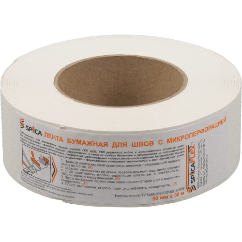 Лента для швов предназначена для армирования стыков листов ГКЛ,ЦСП, ГВЛ различных видов и многократного услиденя швов; для предотвращения появления трещин, образующихся в связи со слабым движением в конструкциях из гипсокартонных и других листов в процессе эксплуатации. Перфорация предотвращает вздутие ленты после монтажа. Центральная биговка служит для формирования точной линии примыкания и формирования внутренних вертикальных и горизонтальных углов.