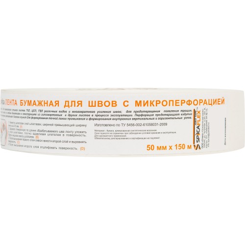 Лента для швов предназначена для армирования стыков листов ГКЛ,ЦСП, ГВЛ различных видов и многократного услиденя швов; для предотвращения появления трещин, образующихся в связи со слабым движением в конструкциях из гипсокартонных и других листов в процессе эксплуатации. Перфорация предотвращает вздутие ленты после монтажа. Центральная биговка служит для формирования точной линии примыкания и формирования внутренних вертикальных и горизонтальных углов.