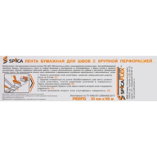 Лента для швов предназначена для армирования стыков листов ГКЛ,ЦСП, ГВЛ различных видов и многократного усиления швов; для предотвращения появления трещин, образующихся в связи со слабым движением в конструкциях из гипсокартонных и других листов в процессе эксплуатации. Крупная перфорация облегчает работу и служит дополнительной защитой от вздутия и расслоения. Центральная биговка служит для формирования точной линии примыкания и формирования внутренних вертикальных и горизонтальных углов.