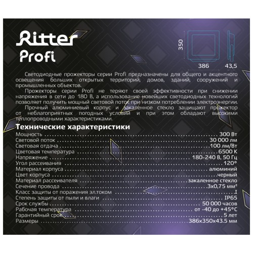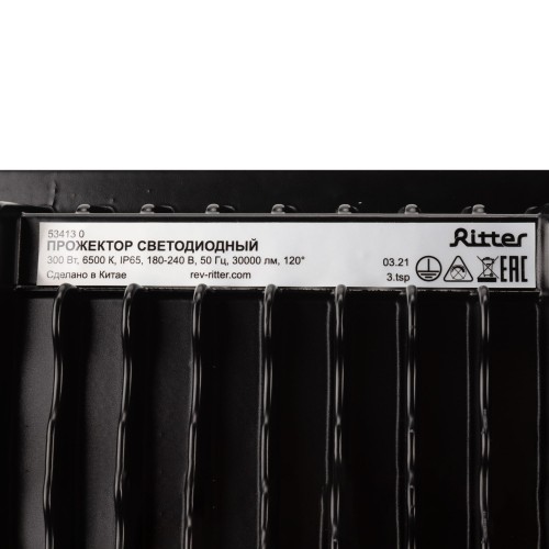 Прожектор светодиодный уличный Ritter Profi 53413 0 300 Вт 30000 Лм 180-240В холодный белый свет 6500К IP65 черный