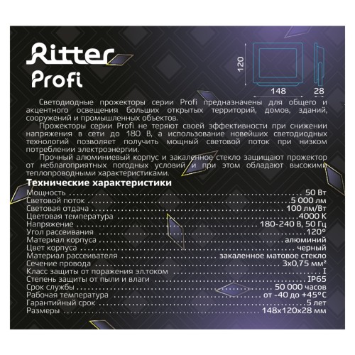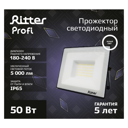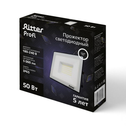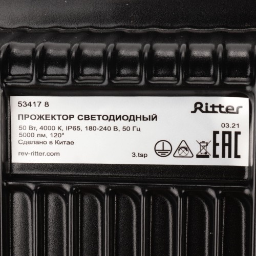 Прожектор светодиодный уличный Ritter Profi 53417 8 50 Вт 5000 Лм 180-240В нейтральный белый свет 4000К IP65 черный