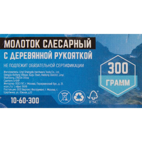 Молоток слесарный кованый Vertextools 300 г с деревянной ручкой