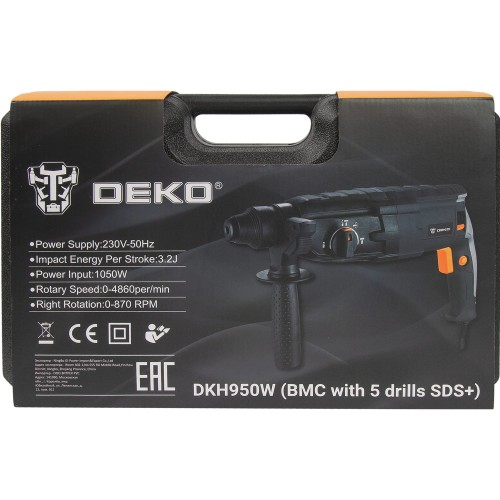 Перфоратор сетевой SDS-plus DEKO DKH950W 950 Вт 3.2 Дж с набором буров