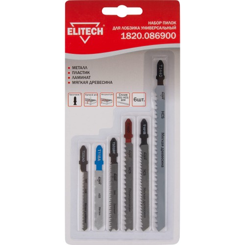 Набор пилок для лобзика универсальных Elitech 1820.086900, 6 шт.