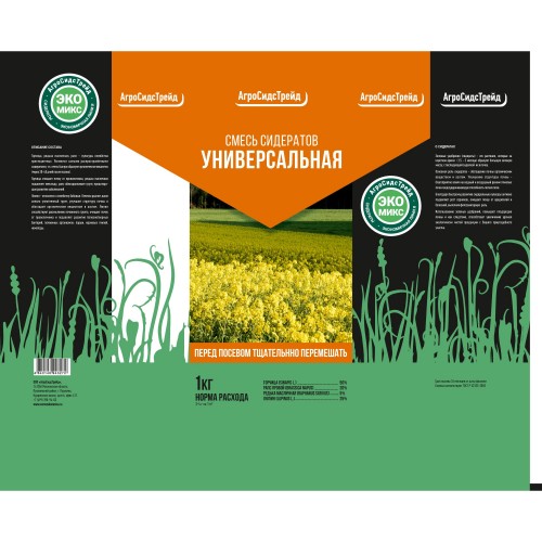 Состав: Горчица 50%, Рапс яровой 20%, Редька масличная 5%, Люпин 25%. Норма расхода: 3-4 г на 1 м2. Горчица очищает почву от проволочника, редька масличная подавляет нематоду, рапс обеззараживает грунт, предотвращая развитие заболеваний. Люпин - отлично рыхлит даже сильно уплотненный грунт, улучшает структуру почвы и обогащает органическим веществом и азотом. Люпин способствуют раскислению почвенного грунта, очищает почву от проволочника и подавляет развитие болезнетворных бактерий, почвенных организмов: парши, корневых гнилей, нематоды.