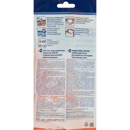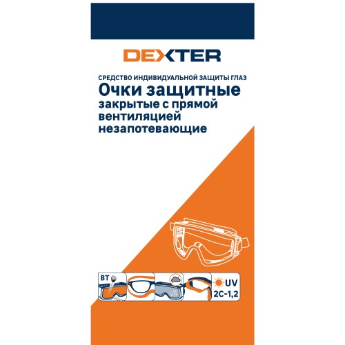 Очки защитные закрытые Dexter, с прямой вентиляцией, незапотевающие