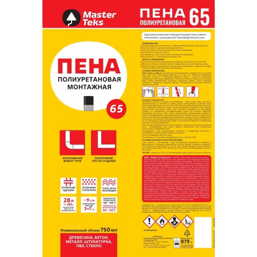 Пена монтажная ручная Masterteks 65 750 мл