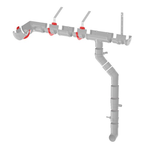 При установке элементов системы на лобовую доску необходимо убедиться в прочном соединении доски с конструкцией здания для исключения вырывания при критической снеговой нагрузке. Пластиковые кронштейны, воронка и соединители крепятся саморезами непосредственно к лобовой доске. Для фиксации желоба в пластиковых кронштейнах заведите желоб в зажимы со стороны лобовой доски, слегка надавливая на желоб, опустите его до щелчка в зажимы с другой стороны кронштейнов.