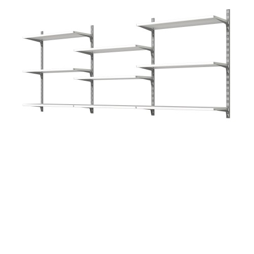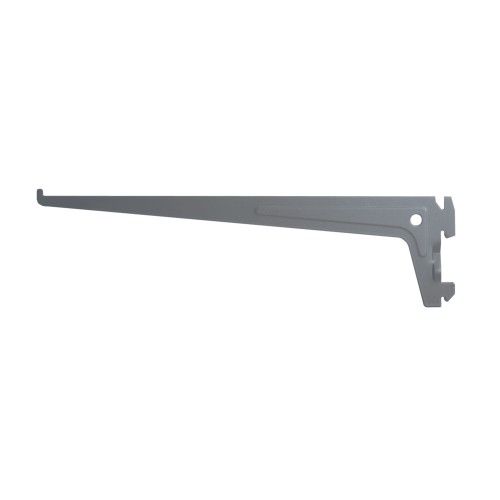 Однорядный стальной кронштейн серого цвета 30 см длиной может выдержать нагрузку до 60 кг. Его конструкция позволяет сочетать кронштейн с одинарной стойкой и полками, чтобы получилась комбинация для хранения. Создайте уникальную комбинацию для хранения инструмента в гараже, одежды в гардеробе и книг в жилой комнате. ### Будьте внимательны! Учтите особенности вашей стены при креплении конструкции.