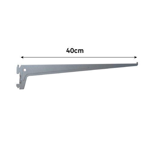 Однорядный стальной кронштейн серого цвета 40 см длиной может выдержать нагрузку до 60 кг. Его конструкция позволяет сочетать кронштейн с одинарной стойкой и полками, чтобы получилась комбинация для хранения. Создайте уникальную комбинацию для хранения инструмента в гараже, одежды в гардеробе и книг в жилой комнате. ### Будьте внимательны! Учтите особенности вашей стены при креплении конструкции.