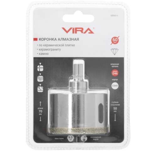 Коронка алмазная по керамограниту Vira 60 мм