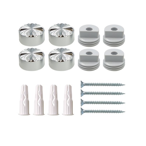 Втулка из АБС пластика - 4 шт.; Колпачок из АБС пластика - 4 шт.; Дюбель универсальный Multi Plug 6х25 нейлон - 4 шт.; Шуруп универсальный 3,5х30 оцинкованный - 4шт.