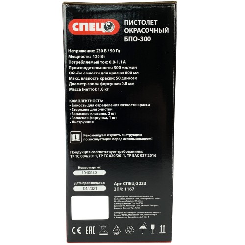 Краскопульт сетевой Спец БПО-300, 120 Вт, 300 мл/мин