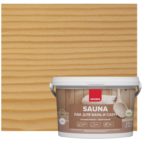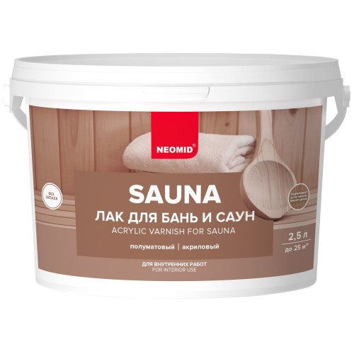 Лак для бань и саун акриловый полуматовый Neomid 2.5 л