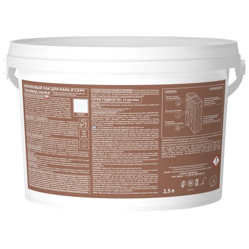 Лак для бань и саун Neomid обеспечит надежную защиту деревянных поверхностей в самых сложных условиях эксплуатации. В состав лака, который мы предлагаем, входят компоненты против вредителей, болезней, плесени и грибков. Акриловая основа продукта обеспечивает ему быстрое высыхание и образует высокопрочное полуматовое покрытие. Здесь вы можете купить лак в экономной таре емкостью 2,5 л. При увеличении объема в 2,5 раза цена упаковки в сравнении с литровой емкостью становится больше только вдвое.
