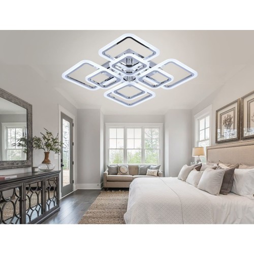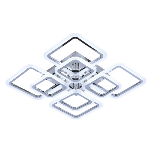 Люстра потолочная Семь огней SF7100/8C-CR LED предназначена для установки в жилых и общественных помещениях. Способна осветить площадь до 24 м². Пульт ДУ позволяет регулировать яркость освещения. Температура цвета может меняться от 3000 до 6000 К. Основной материал устройства — акрил серебристого цвета с матовой поверхностью. Плафоны сделаны из металла. Подходит для монтажа к натяжному и низкому потолкам (до 2,5 м).