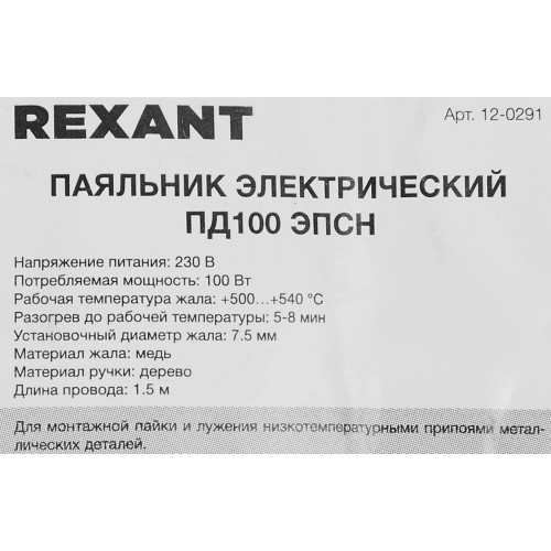Паяльник Rexant 12-0291, 100 Вт