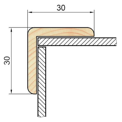 Уголок плоский деревянный сращенный равнобокий 30х30х1000 мм Сосна Экстра
