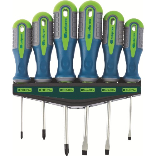 включает в себя 6 предметов из стали CrV с трехкомпонентными рукоятками, которые будут полезны мастерам при осуществлении несложных ремонтных и монтажных работ. С их помощью можно производить монтаж/демонтаж резьбового крепежа с профилем SL и PH |