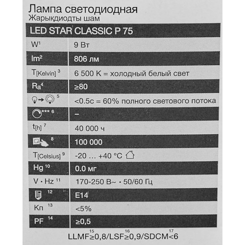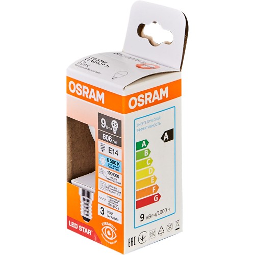 Лампа светодиодная Osram шар 9Вт 806Лм E14 холодный белый свет