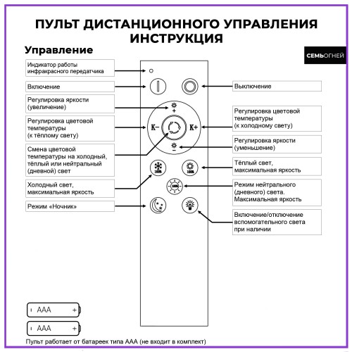| Функции | Управление яркостью освещения |