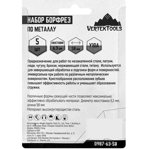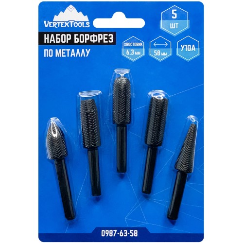 Набор борфрез по металлу Vertextools 0987-63-58, 5 шт.