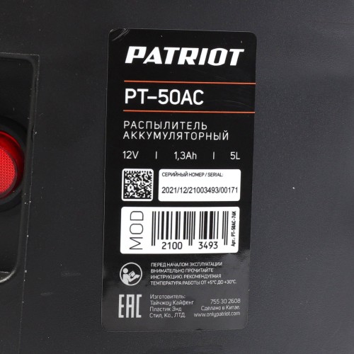 Опрыскиватель садовый аккумуляторный Patriot PT-50AC 5 л