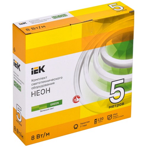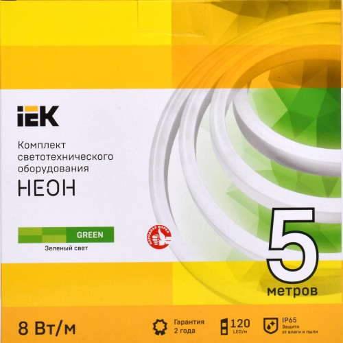 Комплект светодиодной ленты IEK Неон 2835G120 120 диод 8 Вт/м 220 В 50 мм IP65 5 м зеленый свет