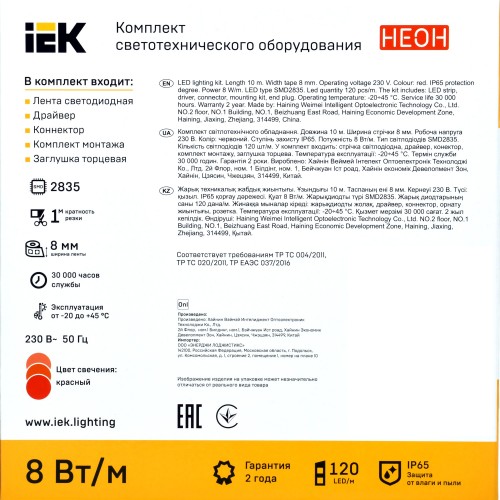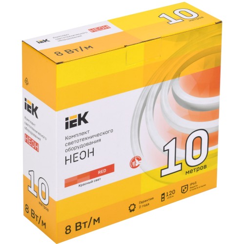 Комплект светодиодной ленты IEK Неон 2835R120 120 диод 8 Вт/м 220 В 80 мм IP65 10 м красный свет
