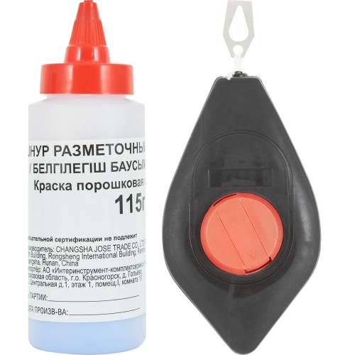 Состав комплекта шнур разметочный в платсиковом корпусе, бутыль с порошком для шнура
