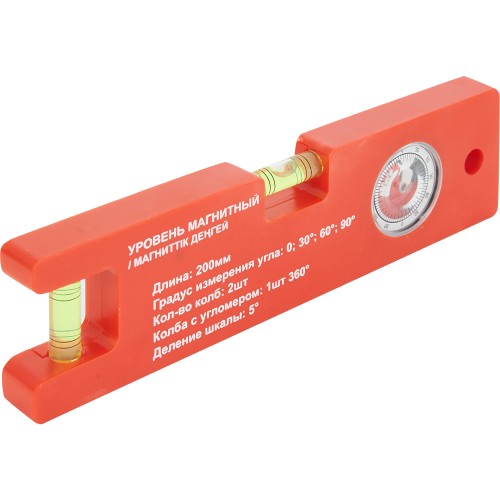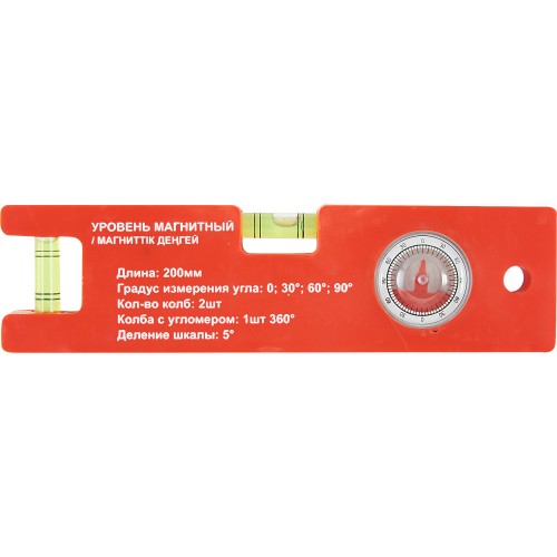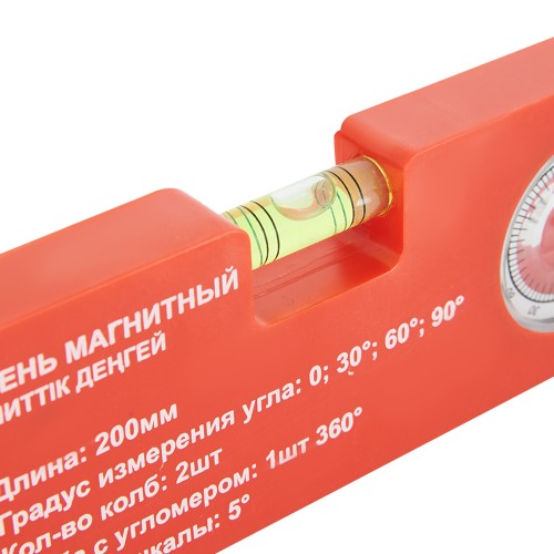 Уровень пузырьковый 3764-F 2 глазка магнитный с угломером 200 мм