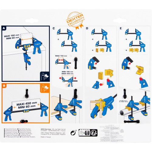 Набор струбцин Dexter 150 мм, 2 шт., угловые насадки
