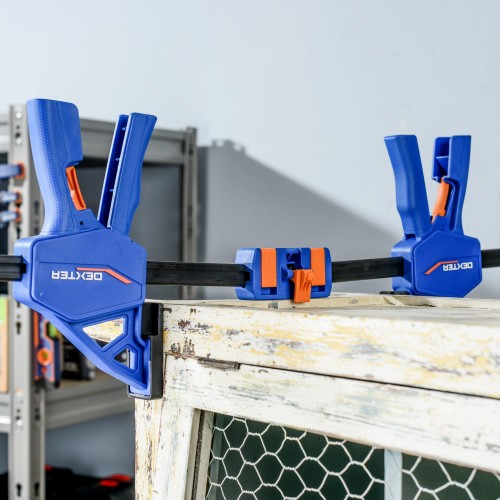 Набор пистолетных струбцин Dexter LL-6DXX2+ANGX3+CO предназначен для фиксации деталей в процессе столярных, ремонтных и других работ. Преимуществом модели является быстрозажимной рычажный механизм, который упрощает эксплуатацию и позволяет выполнять рабочие операции одной рукой. Комплект поставки включает струбцины — 2 шт., угловые насадки.