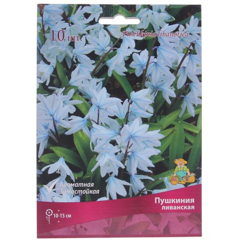 Пушкиния ливанская - многолетнее луковичное растение высотой 10-20 см. Листья пушкинии появляются одновременно с бутонами или чуть раньше. Цветки – светло-голубые, поникающие, колокольчатые, с сильным запахом, собраны в густые кистевидные соцветия. Высота растения 10-15 см.