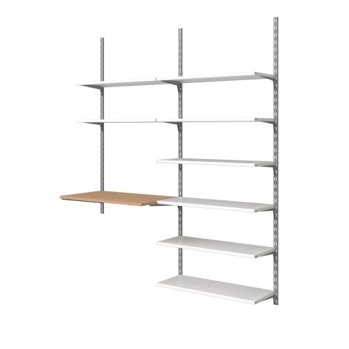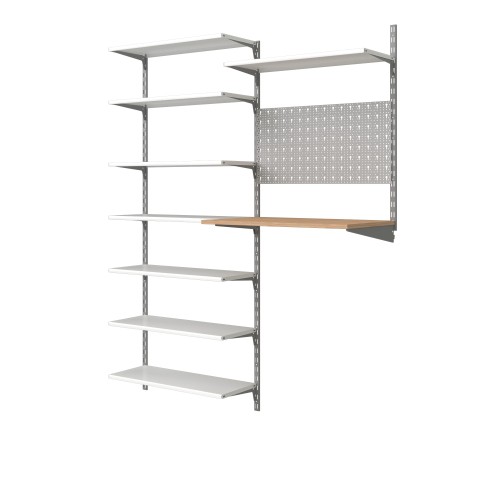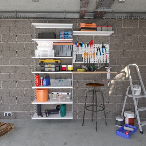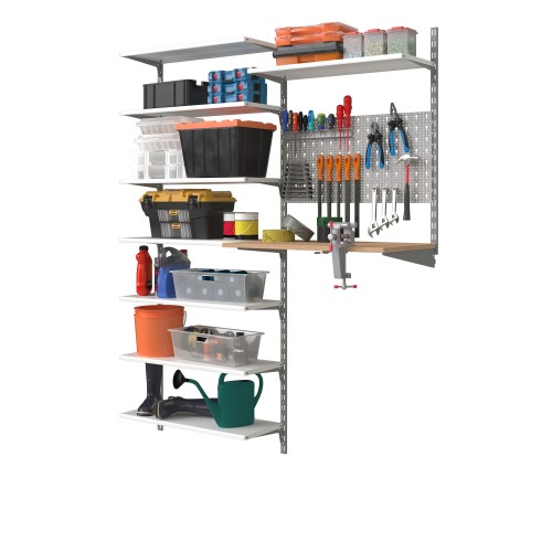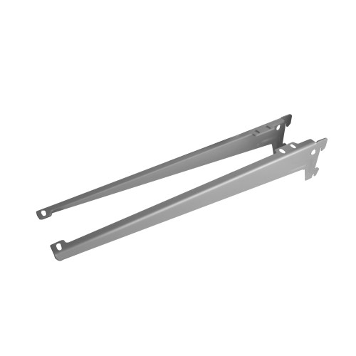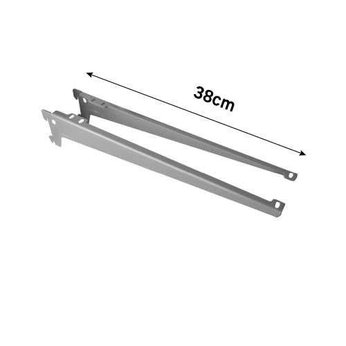 В комплект входят 2 одинарных стальных кронштейна серого цвета с отверстием. Каждый 38 см длиной может выдержать нагрузку до 55 кг. Его конструкция позволяет сочетать кронштейн с одинарной стойкой и полками, чтобы получилась комбинация для хранения. Создайте уникальную комбинацию для хранения инструмента в гараже, одежды в гардеробе и книг в жилой комнате. ### Будьте внимательны! Учтите особенности вашей стены при креплении конструкции.