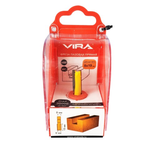 Фреза пазовая прямая размером 8 × 19 мм предназначена для работ с древесиной высокой и низкой плотности, плитами ДСП, МДФ. Широко применяется для получения соединений шипового вида при создании шпунтованных и двойных шпунтованных соединений в ходе изготовления мебельных щитов и соединения заготовок в длину. Диаметр хвостовика — 8 мм.