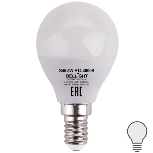 Лампа светодиодная Bellight Е14 шар 5 Вт 430 Лм нейтральный белый свет
