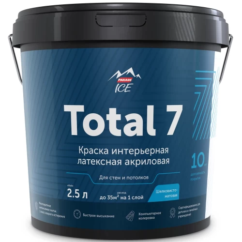 Краска водно-дисперсионная для стен и потолков Parade Total 7 база С 2.5 л