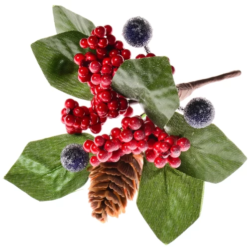 Новогоднее украшение Ветка с синими шариками и шишкой 10x10 см цвет разноцветный