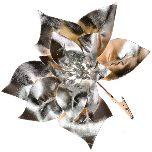 Новогоднее украшение Цветок с блестками 14x20 см цвет серебристый